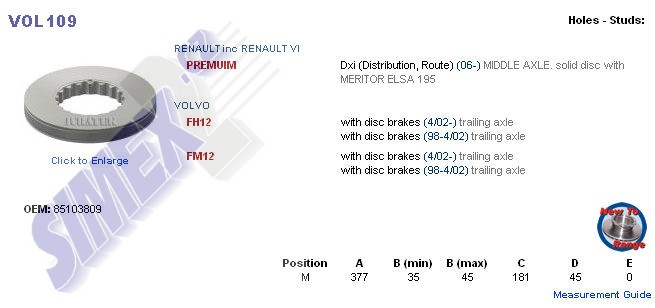 kotouč brzdový VOLVO FH12 ,375x45x181x45 20523409, 5001867799, 81503809, VOL109