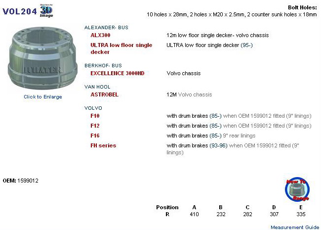 VOLVO: F10, F12, FH series, FL7, FL12 146.073-00, 1599012, VO8415