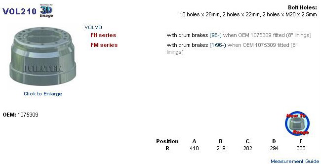 VOLVO: FH, FL, FM series 146.134-00, VO8433, 1075309
