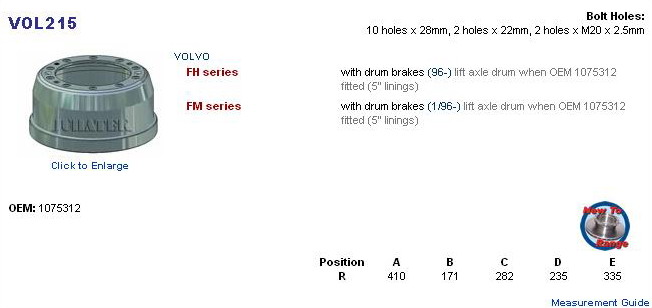 FH,FL,FM lift axle drum 5 inch lining V08448, 1075312